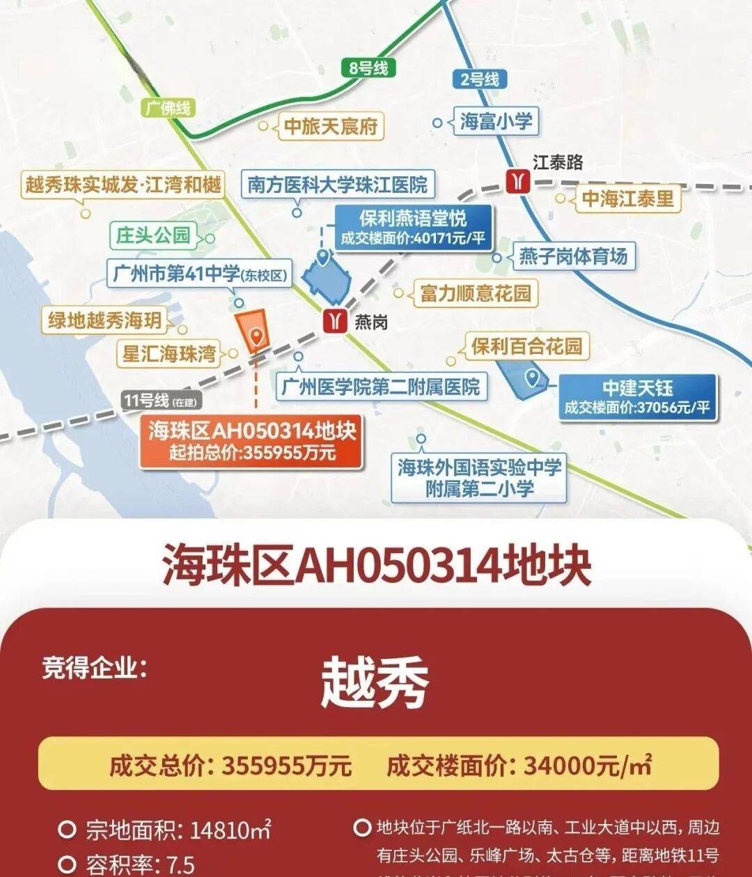 值得关心的是,越秀熙悦江湾的地价(3。4万元/㎡)较着低于海珠西近期出让的其他地块,如燕语堂悦、中建天钰等项目。这意味着,正在划一产物力以至更高尺度的前提下,熙悦江湾具备更强的价钱合作力。连系当前市场取越秀一贯的订价策略,估计项目开盘价钱将极具吸引力,为购房者供给罕见的“高性价比上车”机遇。