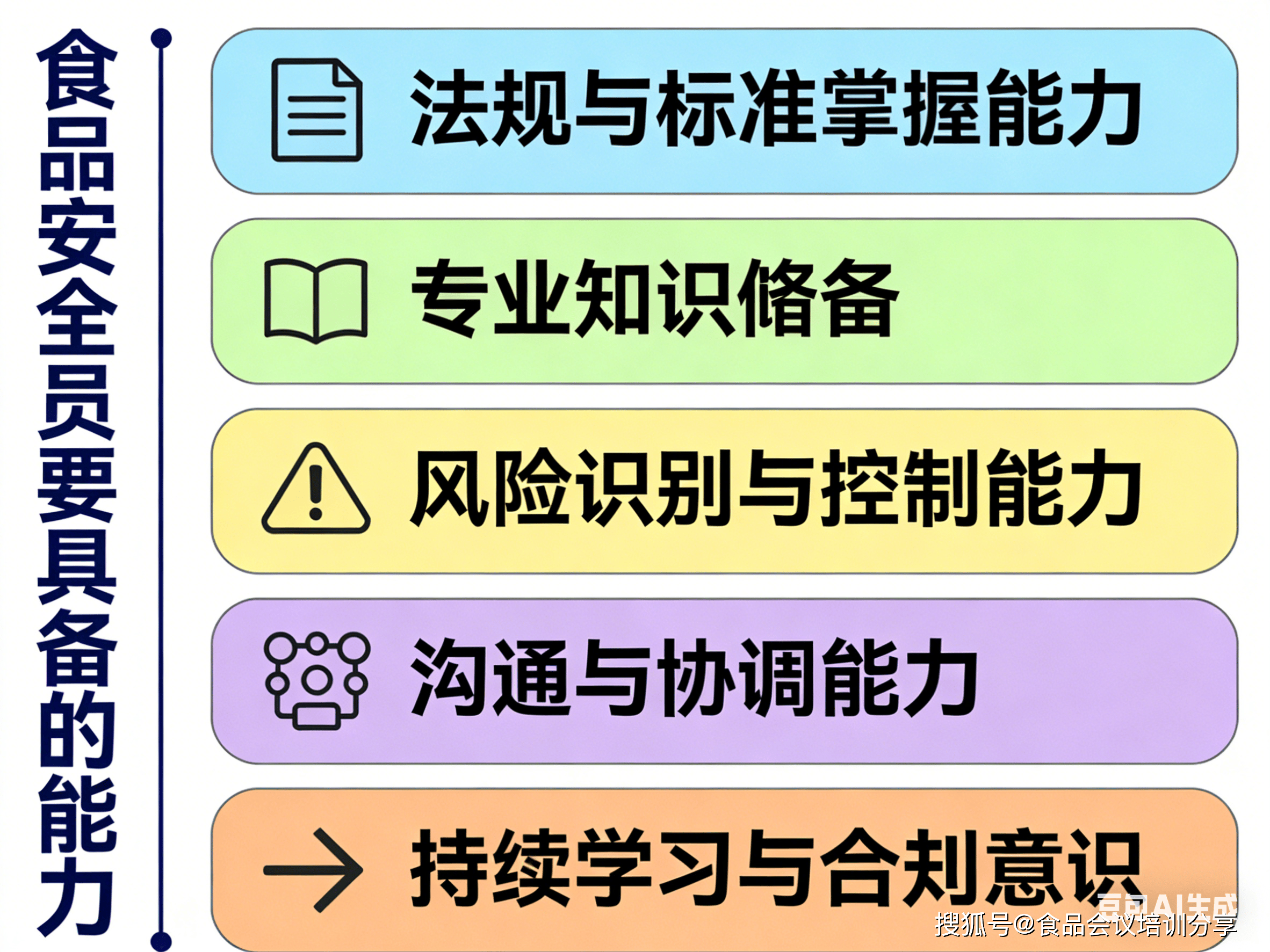 全面控制《中华人平易近国食物平安法》《食物平安法实施条例》《食物出产运营监视查抄办理法子》等焦点律例,明白企业的义务(如 “全过程节制”“从体义务”)及违法后果(罚款、吊销许可、刑事义务等)。熟练使用食物平安国度尺度(GB 系列),包罗原料平安尺度(如 GB 2762 污染物限量、GB 2763 农药残留)、出产卫生尺度(如 GB 14881 食物出产通用卫生规范)、查验方式尺度(如 GB 4789 微生物查验)等,确保出产全流程合适尺度要求。控制食物微生物学(如致病菌污染风险、菌落总数节制)、食物化学(如沉金属、添加剂、兽药残留等化学风险)、食物工艺学(如热加工、冷藏、包拆等环节的平安节制点)等焦点学问,能识别分歧食物品类(如生鲜、罐头、烘焙)的特有风险。熟悉 HACCP(风险阐发取环节节制点)、ISO 22000 食物平安办理系统、SSOP(卫生尺度操做法式)等系统的焦点逻辑,能理解 “风险防止”“过程节制” 而非 “结尾查验” 的办理。能通过原料验收、出产过程放哨、成品查验等环节,识别生物风险(如沙门氏菌、霉菌)、化学风险(如不法添加剂、农残超标)、物理风险(如金属异物、玻璃碎片)及工艺风险(如杀菌不完全、冷链断链)。能针对识此外风险采纳立即办法(如暂停出产、隔离问题原料),并鞭策落实改正防止办法(如优化清洗流程、升级检测频次)。能取出产、采购、研发、发卖等部分无效对接(如向采购部分明白原料验收尺度,向出产部分强调环节节制点操做规范),确保食物平安要求贯穿全链条。能共同监管部分的查抄(供给记实、注释流程),取供应商沟通质量要求,或向消费者解答根本食物平安问题。关心律例取尺度更新(如国度卫健委发布的新国标、市场监管总局的监管动态),自动加入行业培训(如 HACCP 内审员、食物平安办理员证书培训),确保办理方式取行业要求同步。具备 “零” 的合规认识,明白食物安满是企业底线,杜绝 “侥幸心理” 或 “成本优先” 的违规操做。感乐趣的记得留言哦。分享食物行业会议培训动态,充实满脚您的进修需求。前往搜狐,查看更多。